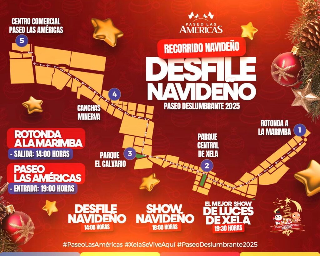 • 14:00 hrs. – Desfile Navideño: Un plan familiar y festivo por las calles cercanas al Centro Comercial Paseo Las Américas (Zona 9).